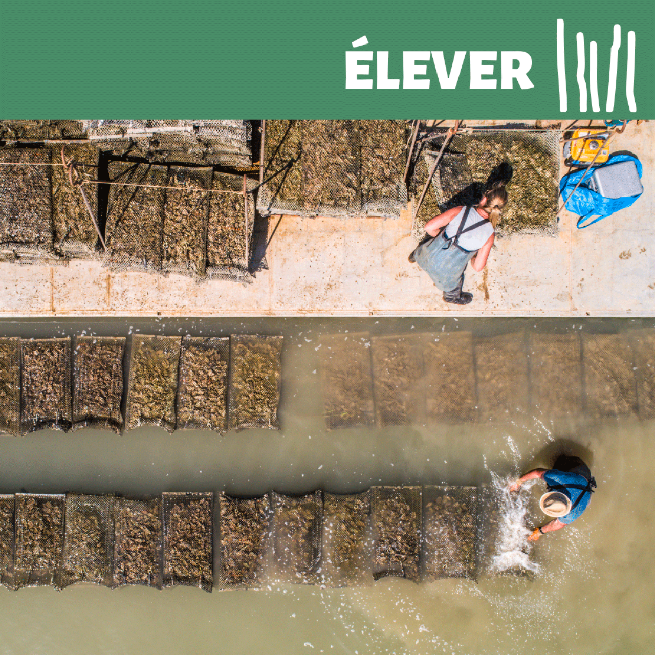 Passées du collecteur à des parcs d’élevage, elles restent alors deux années dans des sacs, placés méticuleusement par les ostréiculteurs. Ils surveillent leur élevage assidûment et les protègent des intempéries et de prédateurs.